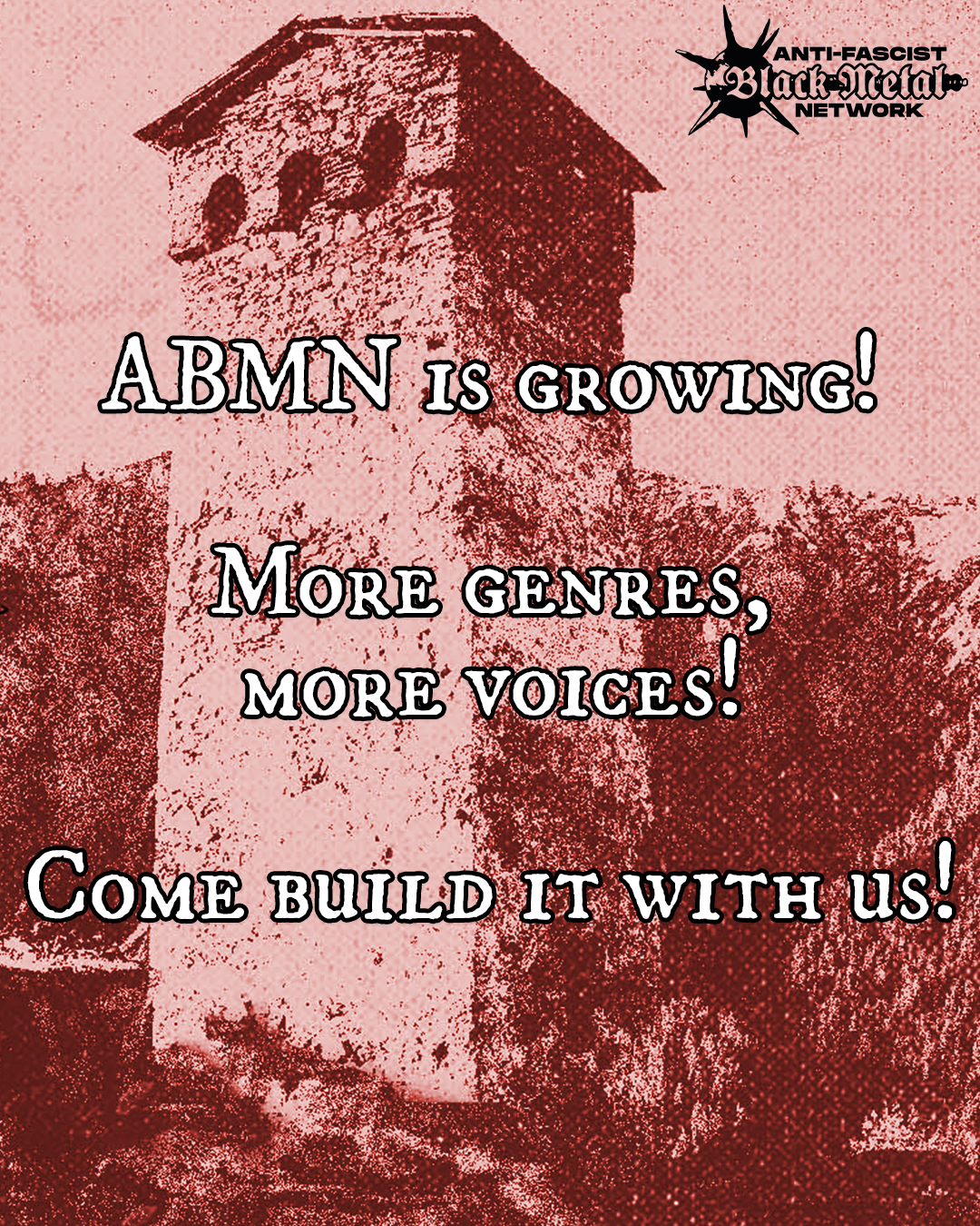 Over time, the network has naturally embraced other genres through artists who share the same commitments, and for a while now, the collective has been working toward a clearer shift in direction: opening the space to antifascist voices outside of extreme music and black metal. Steadily, from here on, we will continue moving towards that goal. Whilst black metal stays as the origin of this platform, it will open to more genres and bands that share ABMN‘s standards.