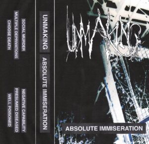 ‘Absolute Miseration‘ is the first album of Unmaking, a trio from Glasgow mixing elements of black and death metal, extremely groovy, with some elements of grindcore and sludge. From the first notes, you can feel the struggle and the pain with this howling scream and the undertuned guitars. Some parts are not without reminding of Coffin Mulch, but also of older death metal.